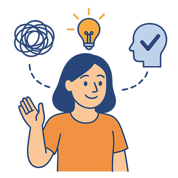Когнитивно-поведенческий подход (КПТ) — это основа, которая помогает замечать автоматические мысли («у меня ничего не получится», «я должен сделать еще лучше») и формировать более здоровые и конструктивные реакции на события, которые раньше забирали у вас энергию.
